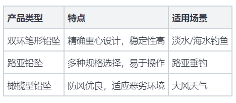 答:选择铅坠时,应考虑钓鱼的水域、目标鱼种和个人使用习惯。根据不同的钓鱼方式选择相应的路亚铅坠或双环铅坠。